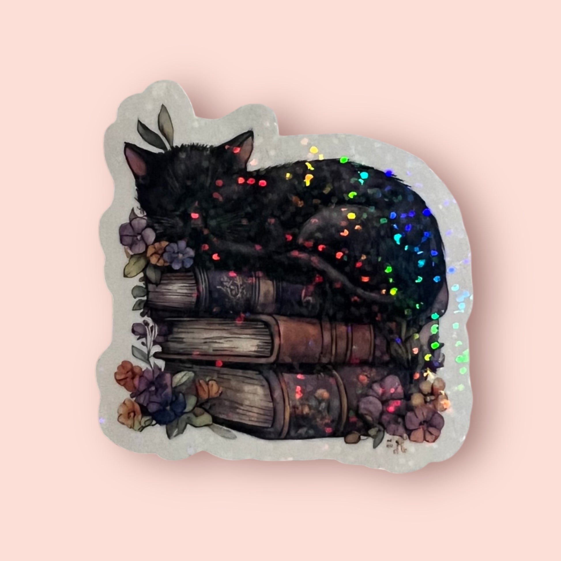 Add a touch of magic to your books and belongings with our Books & Black Cat Holographic Sticker. Featuring a stunning holographic finish, this sticker is perfect for any book lover or cat enthusiast. Adorn your laptop, phone, or water bottle with this unique and eye-catching sticker.